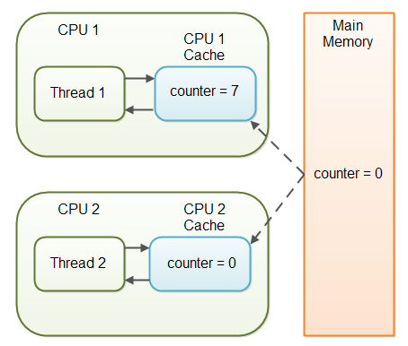 volatile 이란 4번의 상황처럼 Thread 들이 값을 읽을 때 항상 Main Memory 에 직접 가서 확인하라는 뜻이다. 따라서 A Thread 가 생성중인 상황일 때 B Thread 가 instance 에 값이 할당되었다고 착각할 일이 사라지게 된다.