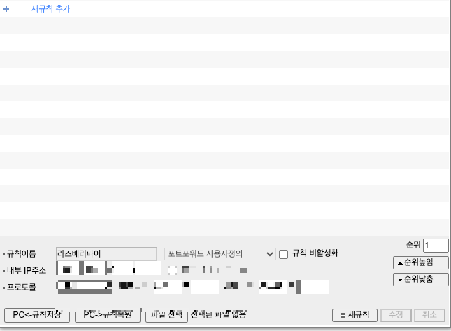 - 아무튼 들어가서 [관리 도구 > 고급 설정 > NAT/라우터 관리 > 포트포워드 설정] 으로 이동한다