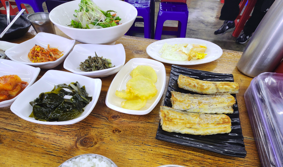 한줄 평: 회국수 해산물들이 맛있다. 갈치구이 평범. 계란 구워먹을 수 있다