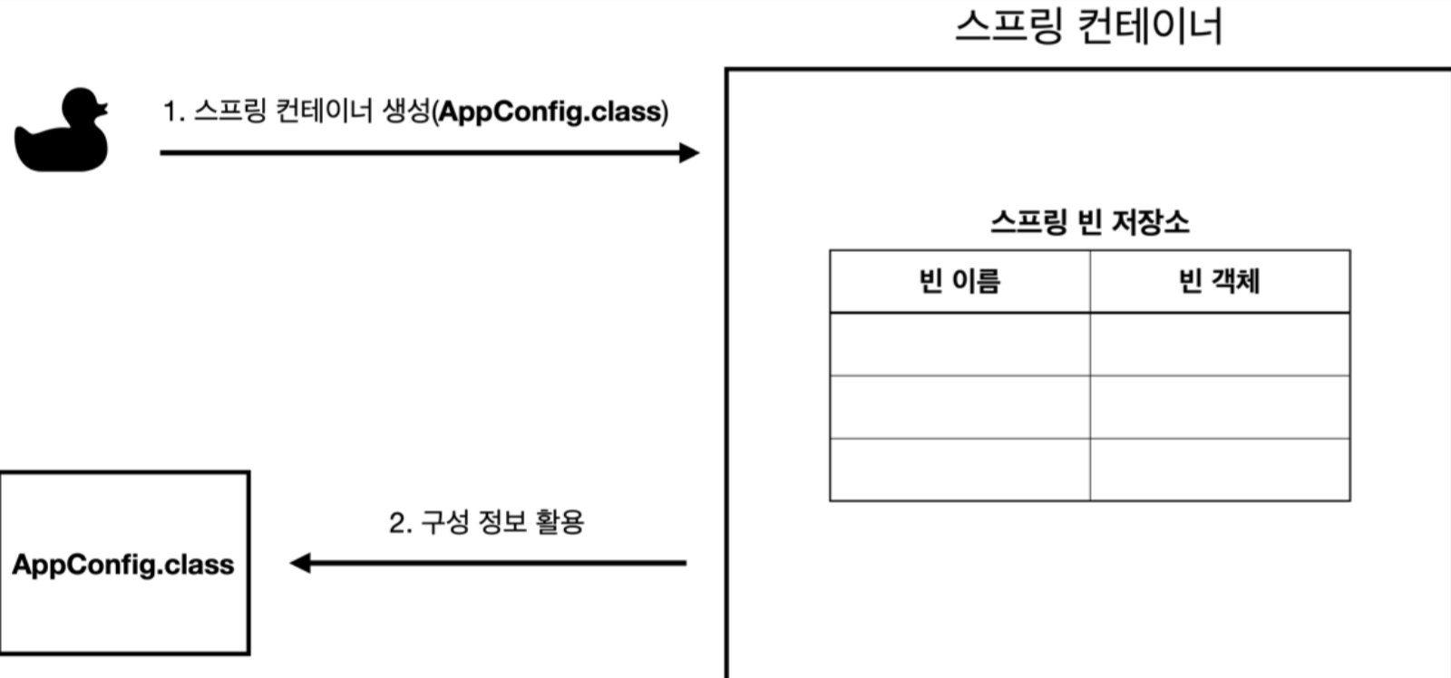 스프링 컨테이너에는 스프링 빈 저장소가 있습니다. 빈 이름과 빈 객체를 매핑하여 저장시켜주는 공간으로, 이 공간