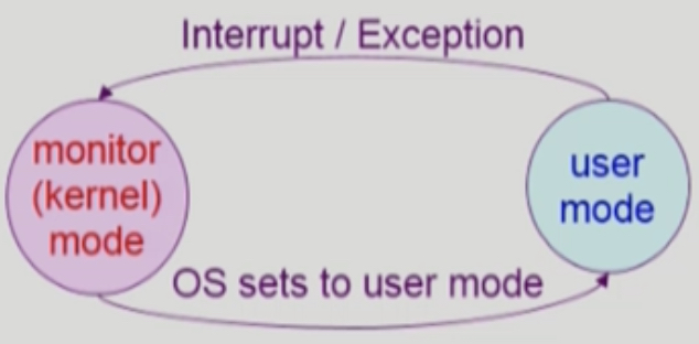 * Mode Bit : 사용자 프로그램의 잘못된 수행으로 다른 프로그램 및 OS에 피해가 가지 않도록 하기 위한 보호 장치 (Dual-Mode)